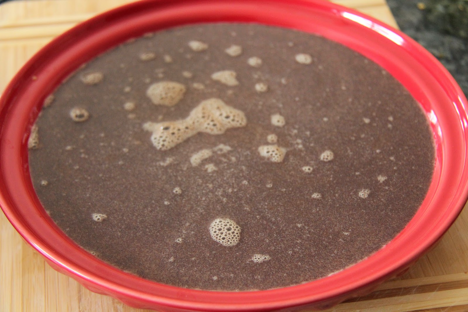5.Transfer to a baking pan or individual ramekins.Place the container in another pan filled with water and place both in the oven and bake for about 45 minutes or until the pudding is set.When you shake the container the pudding should not shake.Remove and cool in the refrigerator for at least 2 hours.