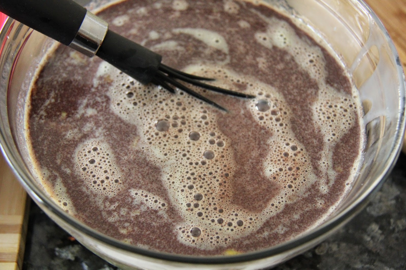 2.In a pan take the milk and warm it,do not boil,add sugar,baking chocolate,cocoa powder,vanilla extract and kahlua and stir until completely combined and let cool.