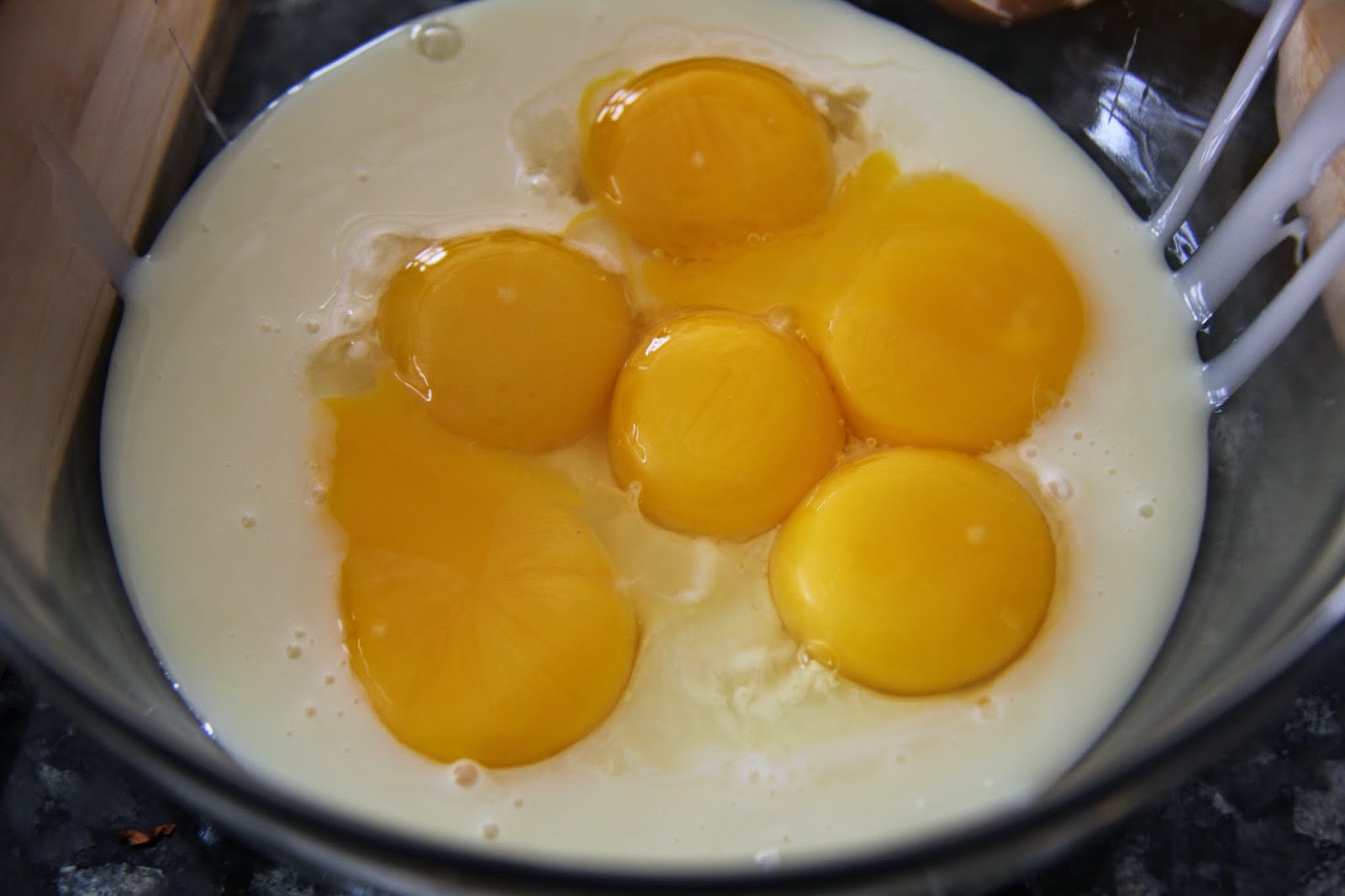 3.In a bowl take the egg yolks and the condensed milk and whisk until combined.