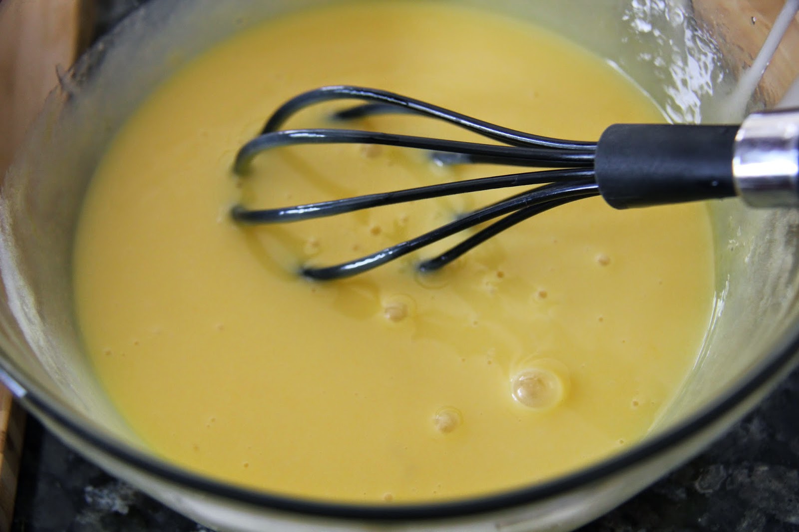 4.Once the chocolate mixture is cooled add it to the egg yolk mixture and combine well.
