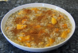 2.Add the mango,drained chia seeds,cinnamon,honey and coconut flakes,sunflower seeds and craisins and mix gently until combined and serve.