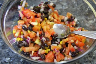 If you have a BBQ grill,grill the corn before taking the kernels,that gives the best corn taste to the salad.