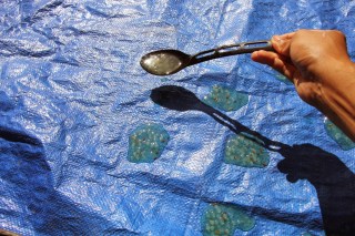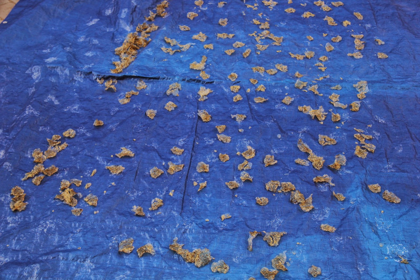 2.Take a large and clean drop cloth and spread in the sun.With a tablespoon drop a tablespoon at a time and spread a little.Repeat for all the starch and let dry for a day in the sun.If you live in a dusty area place another clear drop cloth on top to cover from dust.Gently take them off the drop cloth and store in an airtight container once dried.