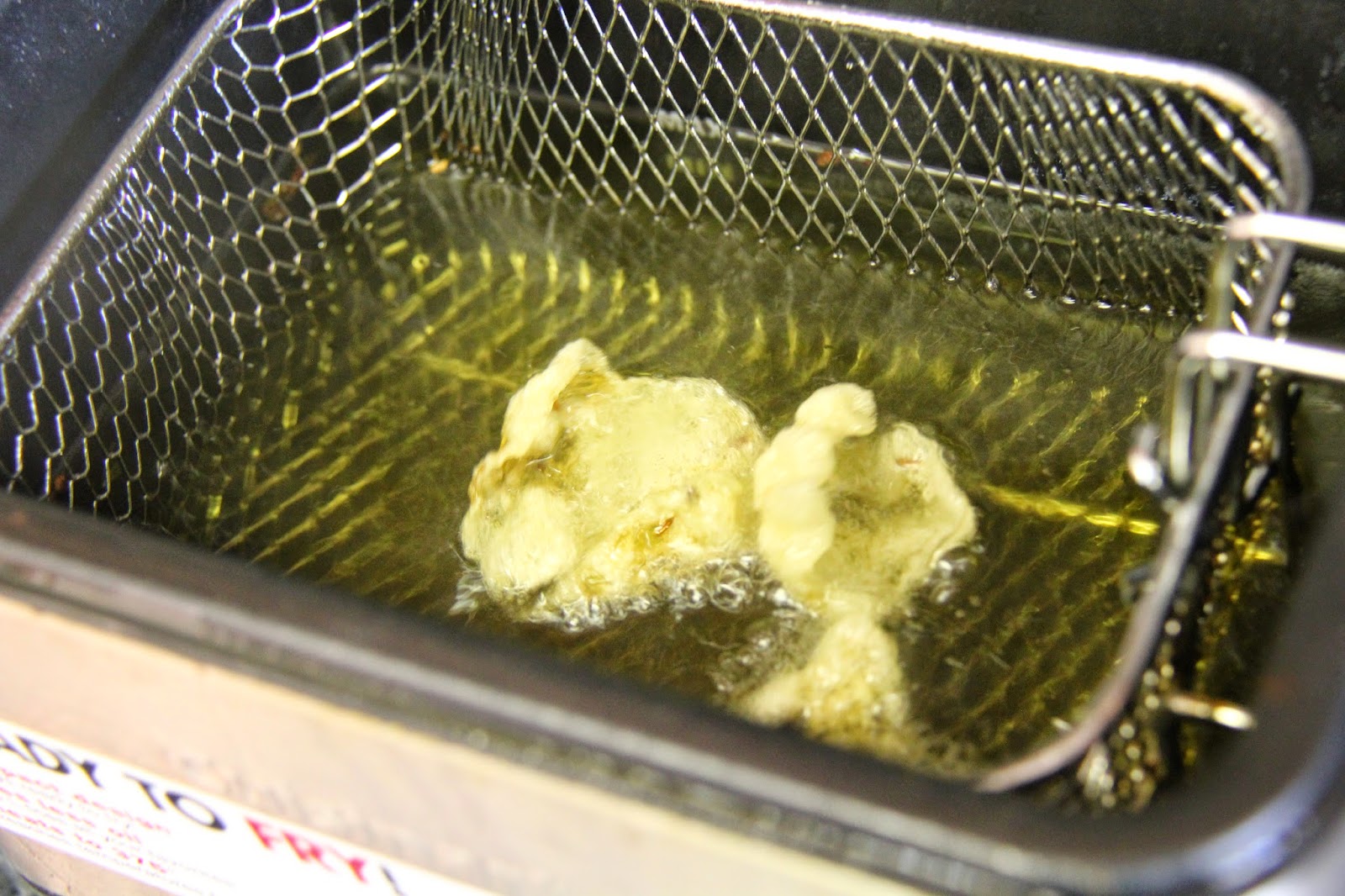 3.Heat oil for frying and fry them until they bloom in oil(they get larger in size) and take off and drain on kitchen towel to remove excess oil.