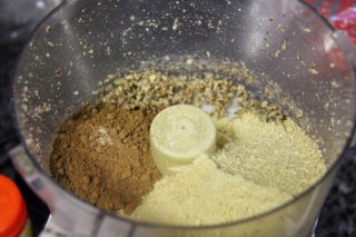 2.Add the cocoa powder,graham cracker crumbs,brown sugar and butter and pulse until crumbs form and the mixture will come together.
