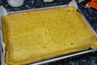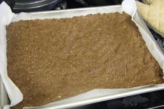 3.In a half baking sheet,line it with parchment paper and transfer the mixture to the paper and press down firmly in a uniform layer.