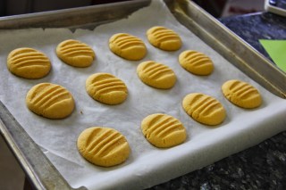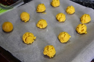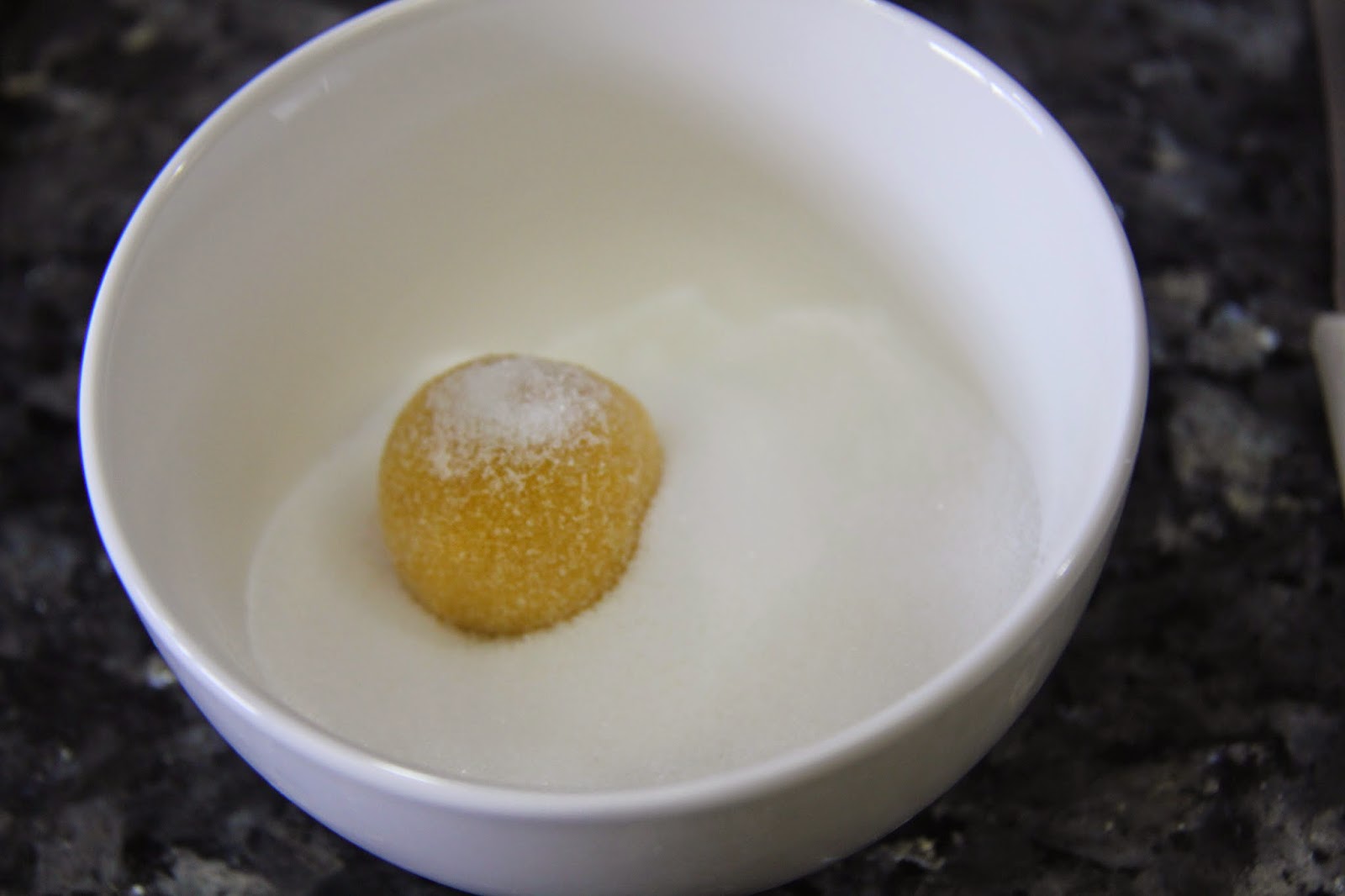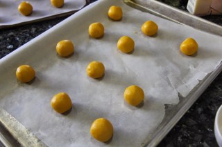 4.Shape into roundles and roll in sugar and place on a cookie sheet.