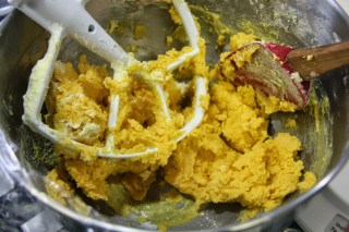 3.Add the egg and mix just until combined and add the flour mixture and mix just until combined.
