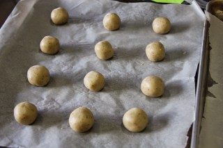 7.Preheat oven to 350 F.Once they are chilled and are firm to touch take the cookie sheet and bake in oven for 14-15 minutes.
