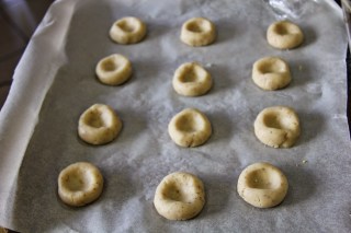 6.Place the jelly in the well,repeat for all the cookies.Cover the cookies with surround wrap and place in the refrigerator for at least 4 hours.