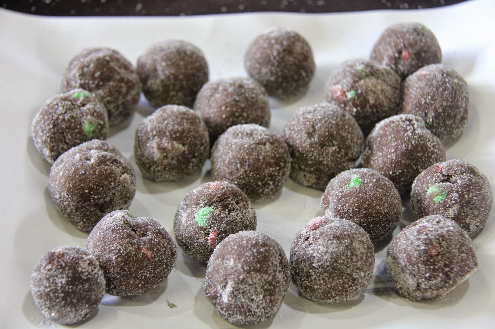 5.Shape into roundles and roll in sugar and Refrigerate for 1 hour. Place on a cookie sheet and bake for 12-15 minutes.