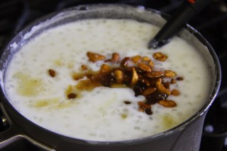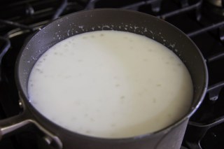 3.Once the tapioca is cooked add 2 cups of milk and sugar and let come to a boil, stirring occasionally until all the sugar is melted.
