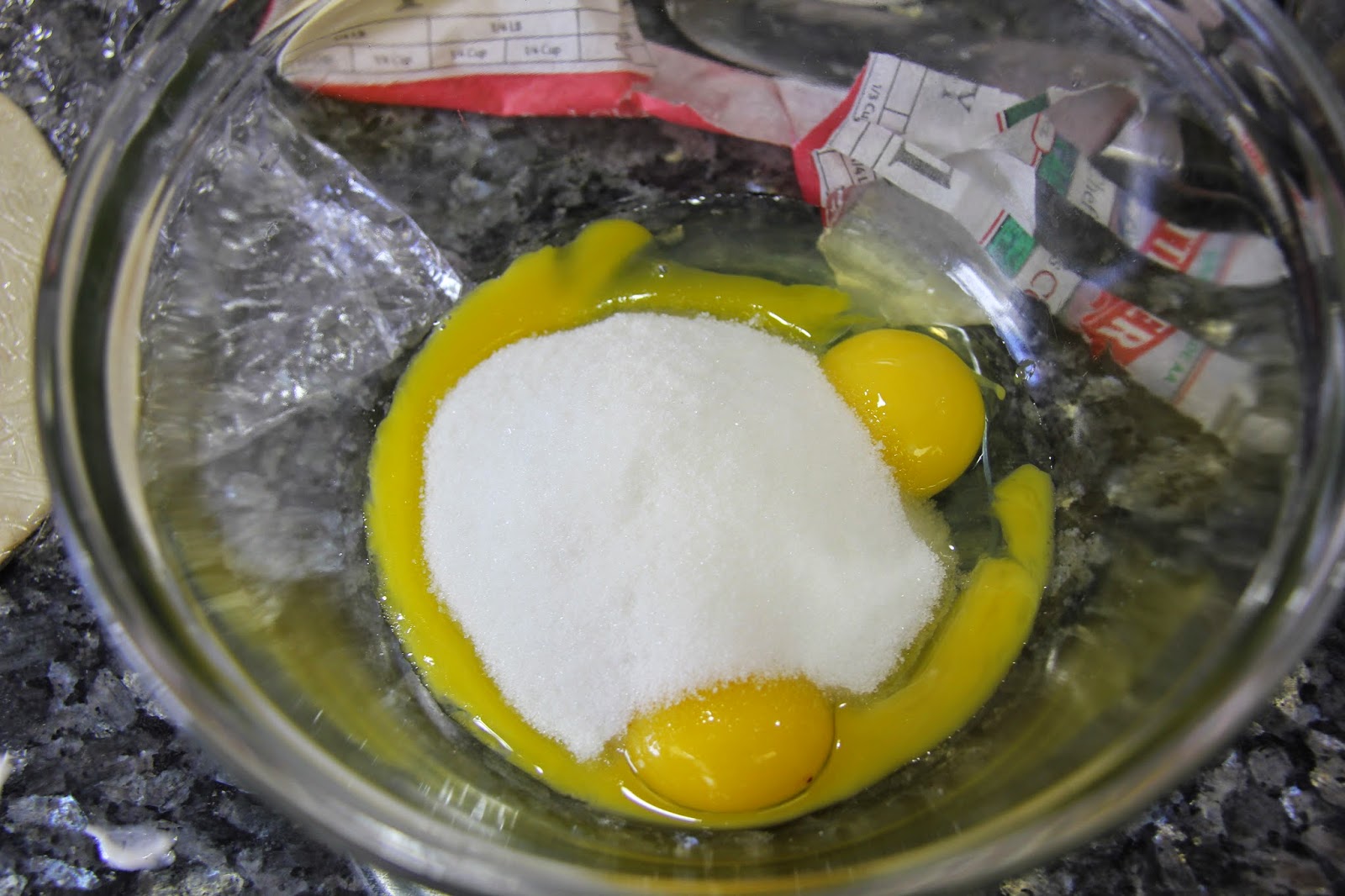 2.In an other bowl whisk the eggs, yolks and sugar until pale and sugar is combined.