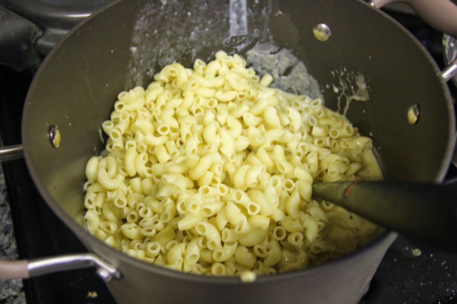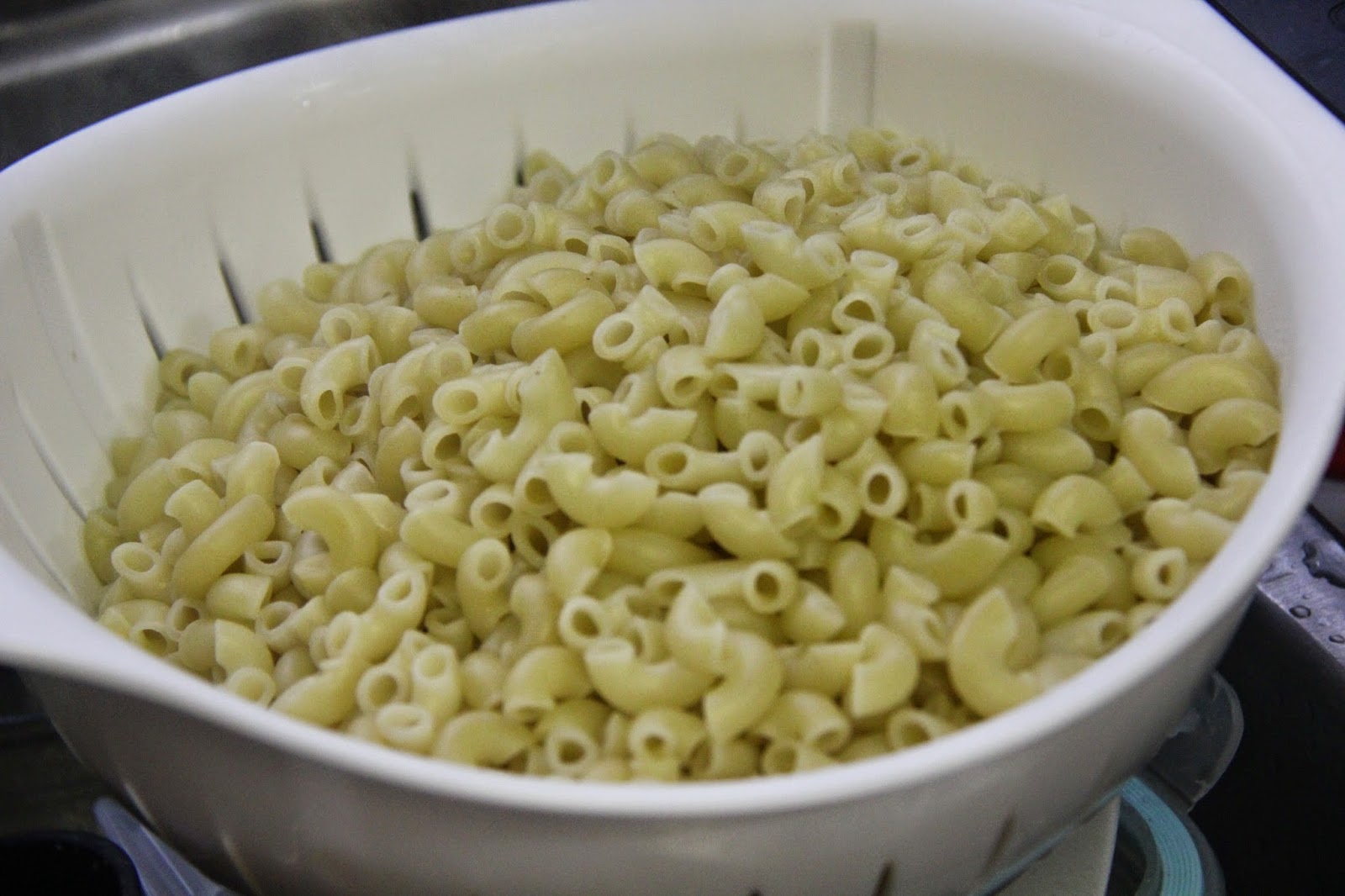 3.In a separate stockpot heat water and boil, add the macaroni and cook al-dente as on the box/package.