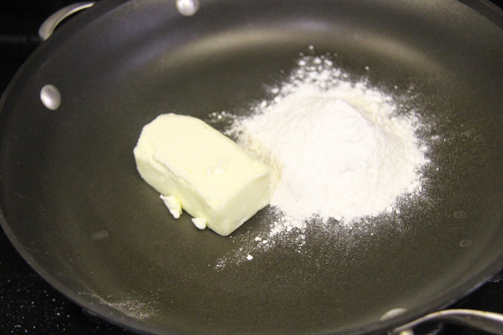 1.Take the butter and flour in a pan and start mixing it while the butter melts on a medium flame.Mix well to combine.