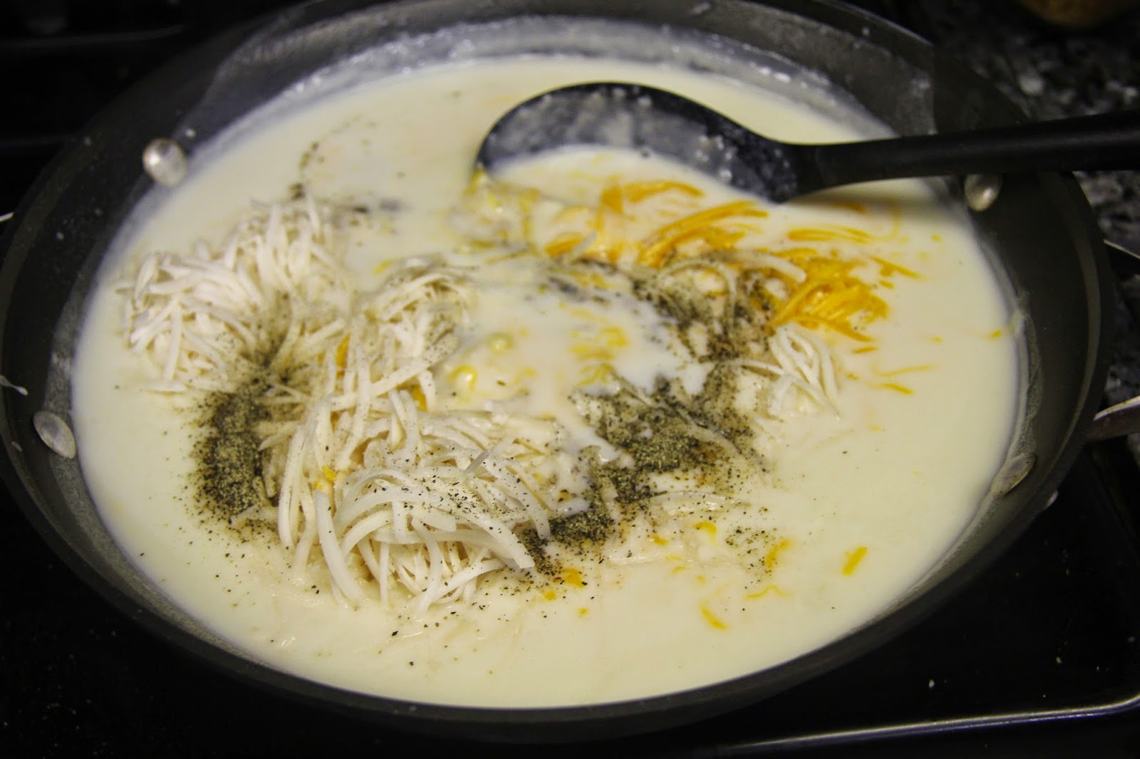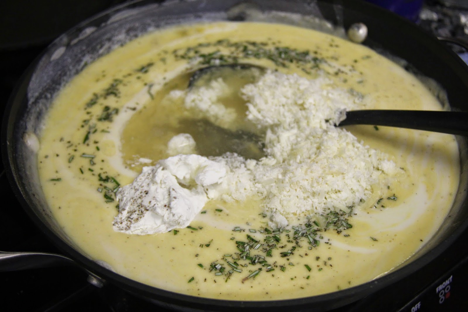 4.Meanwhile, add all the cheeses, rosemary and salt and pepper and combine well.