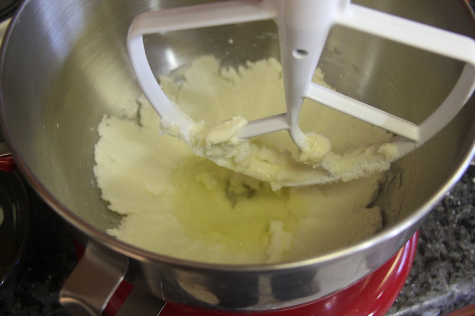 3.In another bowl beat the butter and sugar until creamy. Add the egg whites and vanilla and mix until incorporated.