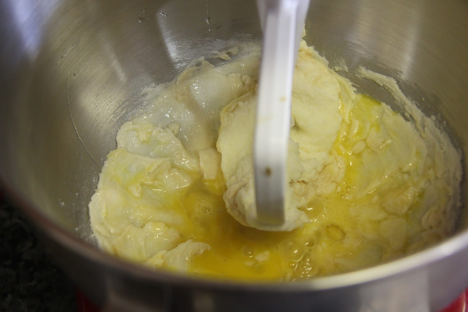 3.In another bowl beat the butter and sugar until creamy. Add the eggs one by one stirring until incorporated,add the sour cream and mix and then the and lemon extract and lemon zest and mix until incorporated.