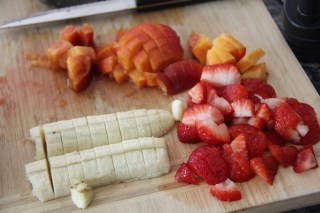 2 tablespoons each chopped strawberries, blueberries,blackberries, I have used nectarines and apples as well etc