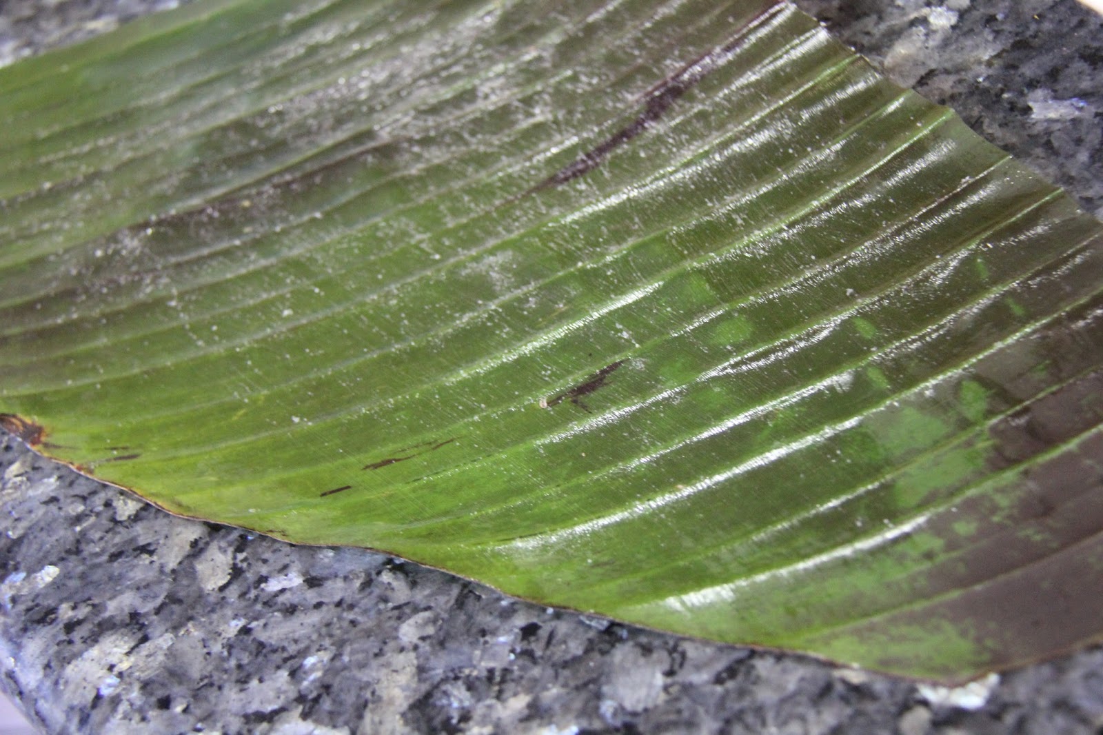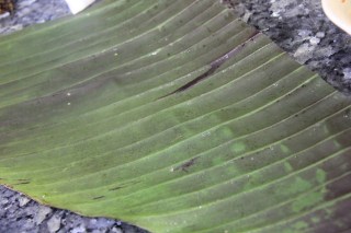4.Wash banana leaves and wipe them with kitchen towels until dry and smear ghee on them.