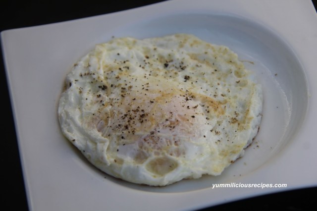 3.Lightly jiggle the pan to make sure the eggs are not sticking to the pan.Now with a spatula or directly with the pan gently flip the eggs.Cook for 1 more minute and slide onto your plate.