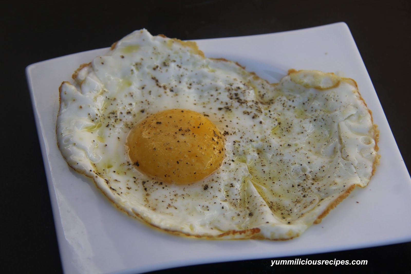 In this method of cooking eggs, the eggs are cracked onto the pan and cooked until the whites are just set but are not flipped to cook on the other side, this leaves the yolk runny.