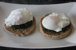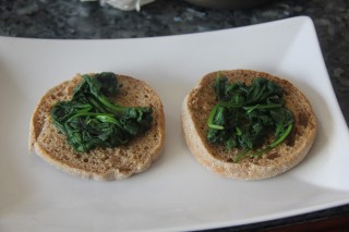1.Place the muffin halves facing up on a plate.Place the spinach on top.