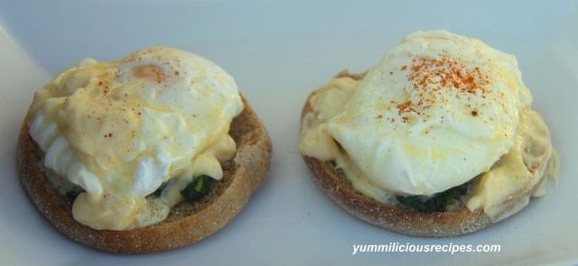 I just saute spinach in water, I didn’t want to add more fat on top of the hollandaise. You can saute them in a teaspoon of oil or butter if you wish.