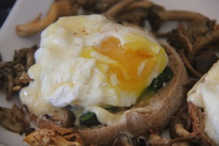 3.With a slotted spoon gently remove the eggs onto a paper towel and let the water drain.Sprinkle salt and pepper and serve.I served it as an eggs benedict over spinach and mushroom, look at that oozy runny yolk!