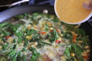 4.Add the cornmeal stirring continuously so that it doesn’t lump continue stirring for about 10 minutes until creamy.