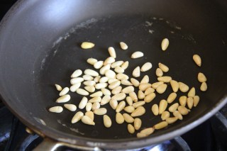 5.Dry Saute some more pine nuts on the side and top the polenta with cheese and pine nuts.