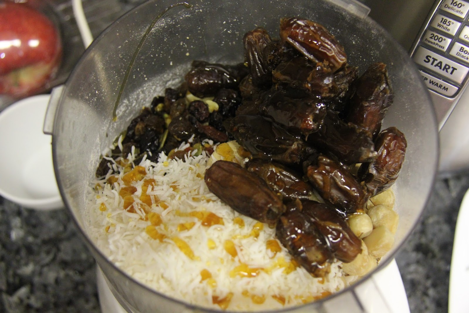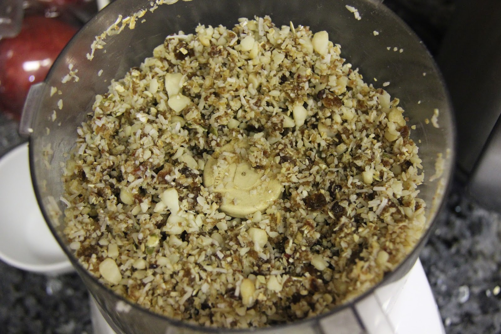 3.Add the remaining ingredients and honey and pulse until the mixture starts to come together in a lump.