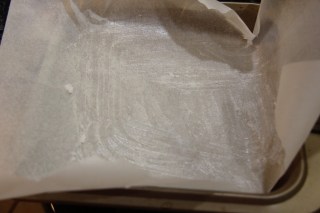 4.Line a 9 by 9 baking sheet and apply the coconut oil on the bottom and transfer the mixture to it, press down firmly with your fingers to form a sheet.