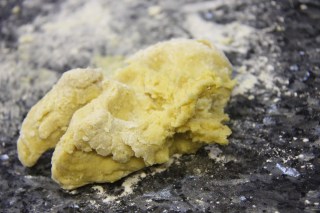 2.With a fork start working the dough by pushing it from outside to the inside over the eggs, keep repeating this until all the flour and eggs are combined.
