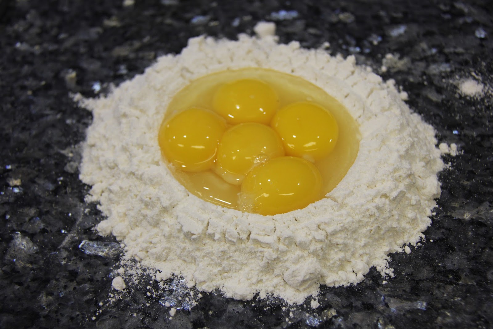 2.With a fork start working the dough by pushing it from outside to the inside over the eggs, keep repeating this until all the flour and eggs are combined.