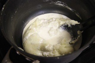 1.In a Saucepan boil the celery root and potatoes separately until fork tender(a fork inserted should go through easily).Now peel both the potato and celery root and pass them through a food mill or a strainer.