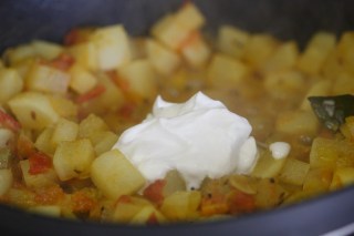 5.Now add the turnips and cook for 2-3 minutes until the flavors meld and then add the coconut milk and gently simmer for 2 minutes and turn off the stove.