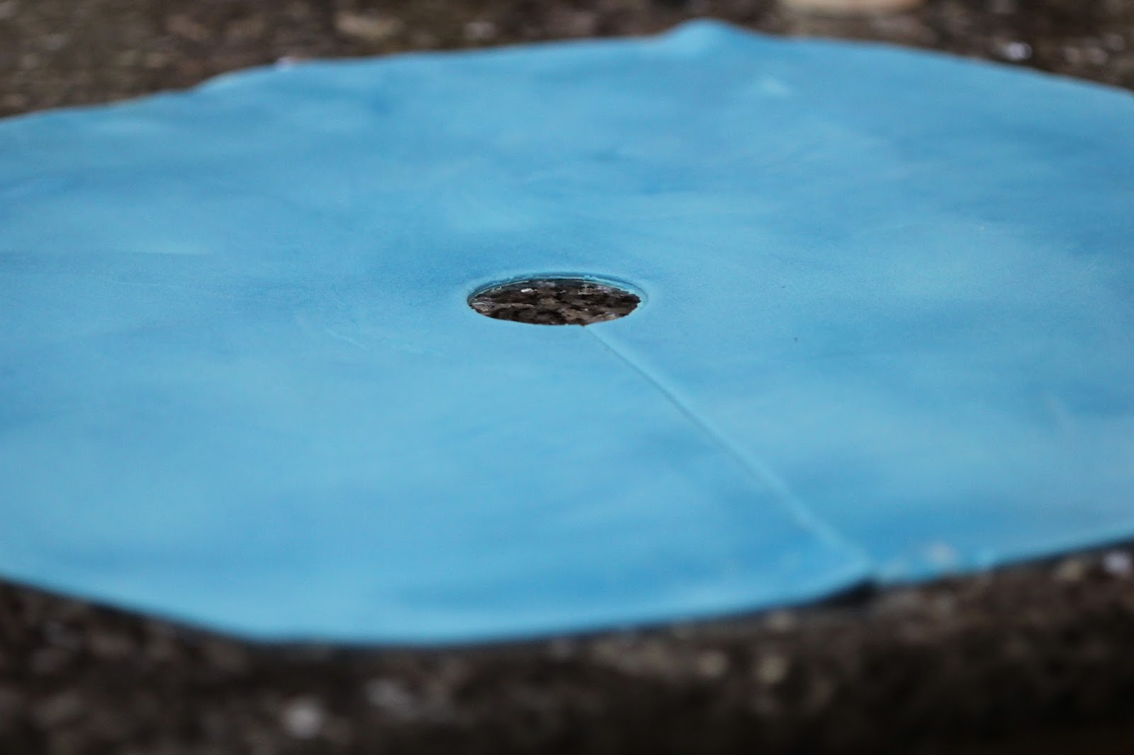 3.Now measure the height of the cake from the bottom to the hips area,roll out your fondant so the radius is atleast 1 inch more than the height of the doll and diameter is atleast a double +2.For example if the height of the doll is 8 inches, roll the fondant to 8*2+2=18 inches diameter.Do not roll out too thin or it will tear due to the height of the cake.If your fondant is drying out in this process, mix it with vegetable shortening.Then place a hole in the enter as the diameter of barbies hips and a slit so you can wrap the skirt around.Do measure these carefully because you have one chance to put the fondant on.