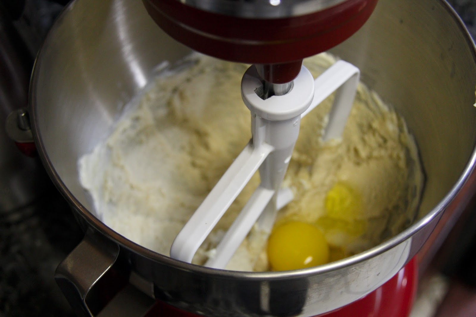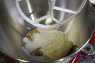 1.Heat oven to 350F.Cream butter and sugars until the sugar has completely incorporated.