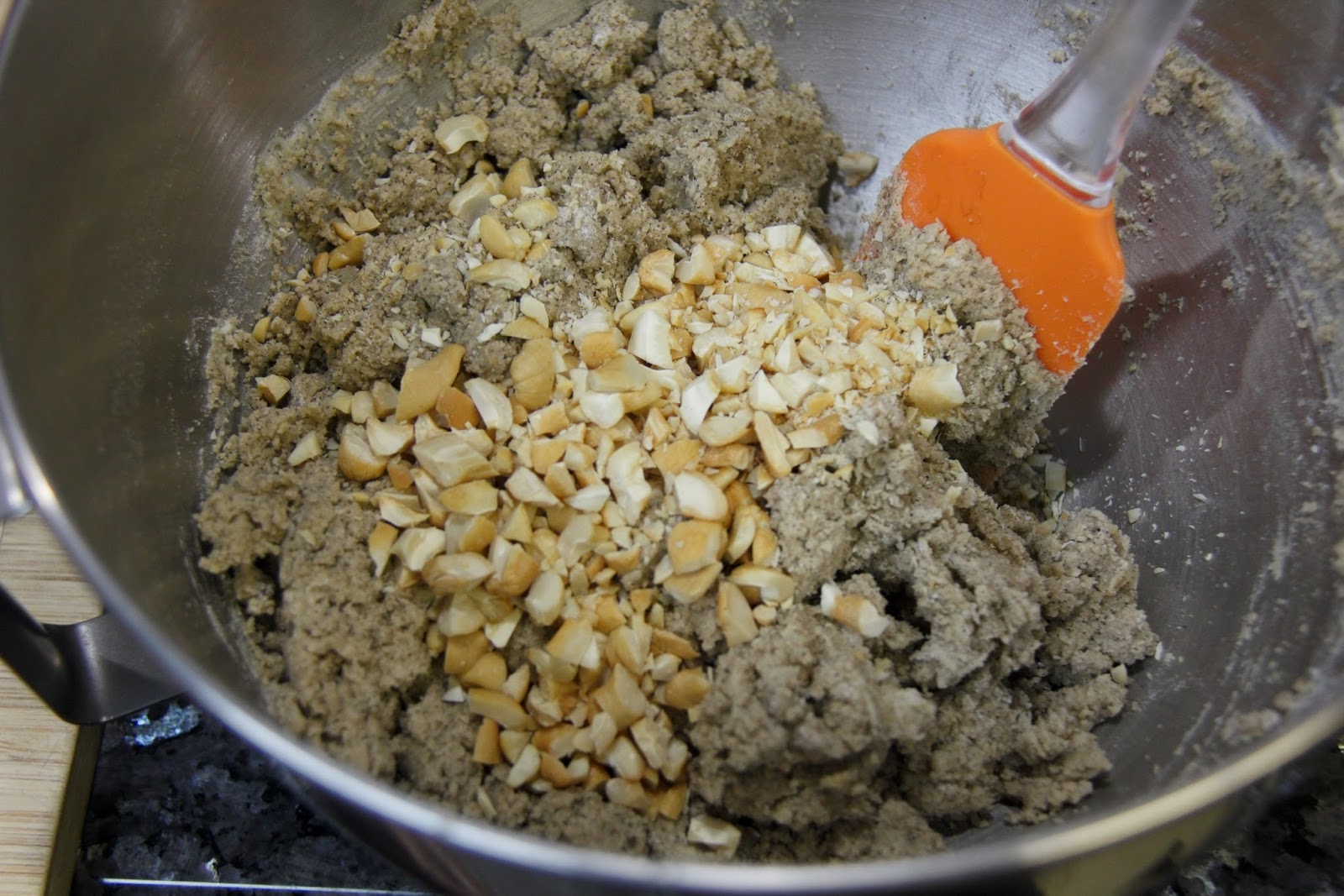 4.Add the flour mixture and mix until just incorporated.Fold the Cashew pieces.Scoop cookie balls and bake in oven for 12-15 minutes, just until the edges start to brown.Cool for 4 minutes and store in an airtight jar.