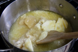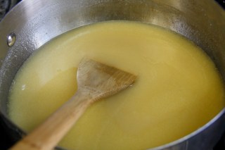 4.Once it is completely melted, turn the heat to medium stirring continuously.
