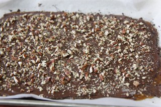 8.Sprinkle sea salt and pecan pieces and gently press down to adhere.