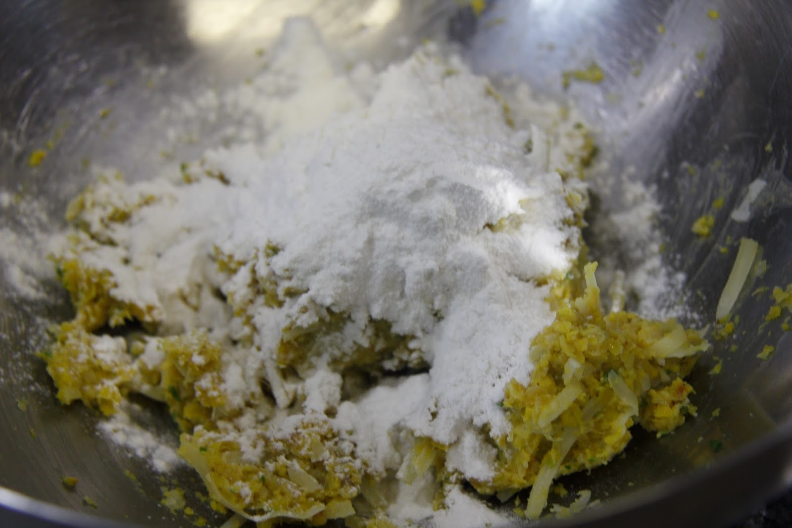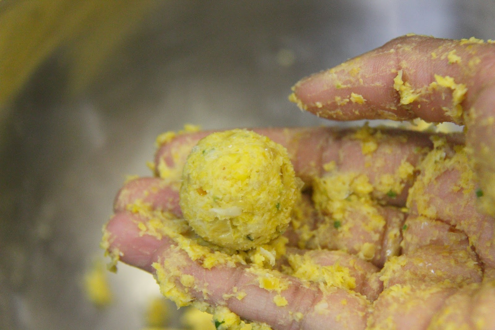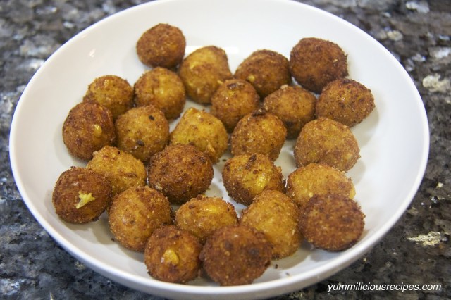3.Make round balls out of the batter and deep fry at 350F until golden brown and drain onto paper towels.