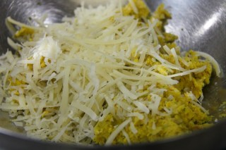 1.Pulse all the ingredients except cheese,oil and flours in a food processor to a coarse texture.
