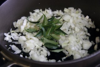 2.Heat oil in a pan add the onion,green chili and curry leaves and saute until soft and translucent about 5-10 minutes.