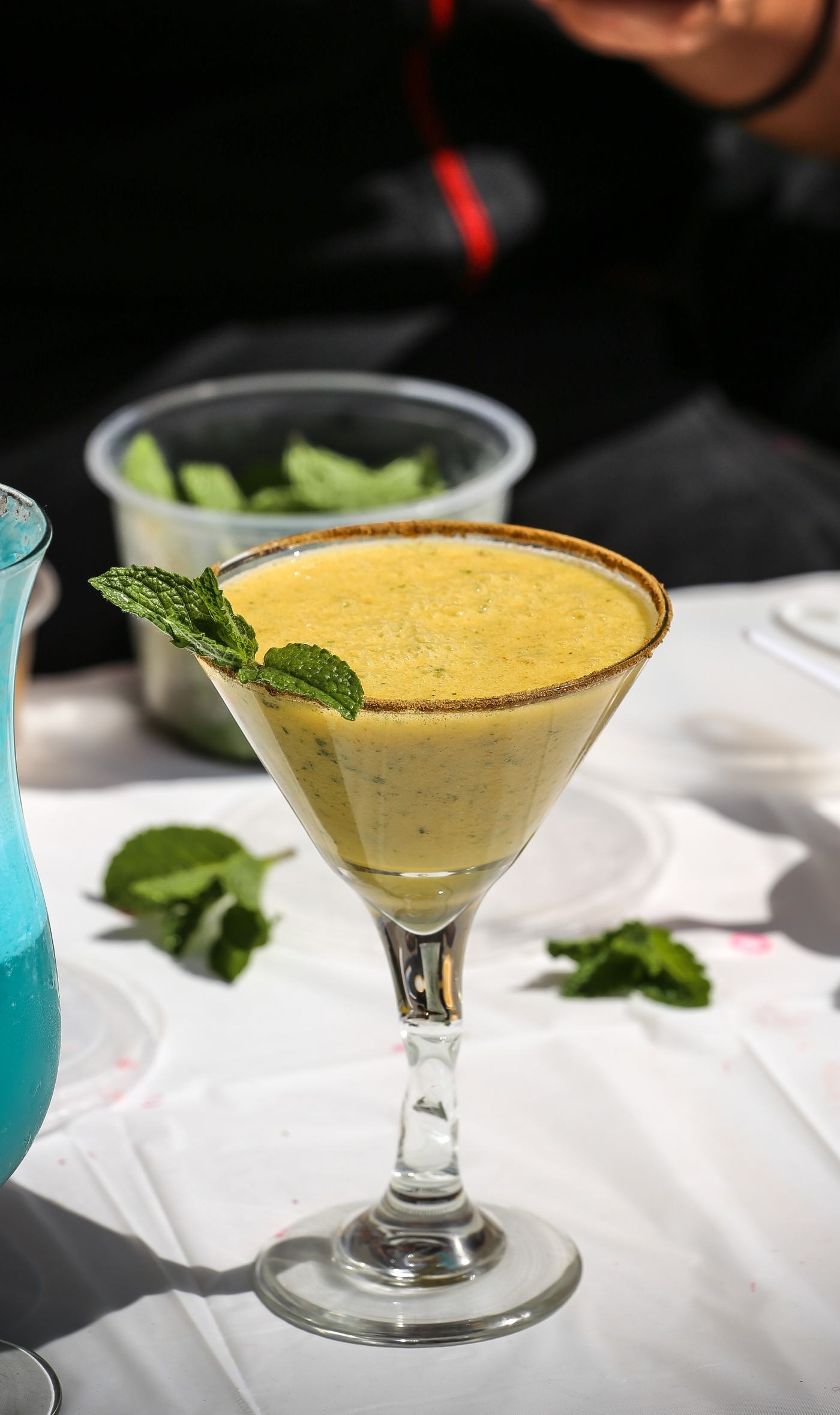 Aqua Frescas translate to “fresh waters” in spanish.They are made by blending fruits with sugar and water.For the Mango aqua fresca we are using fresh mango, orange juice, mintleaves and to add a twist to it pani puri masala.
